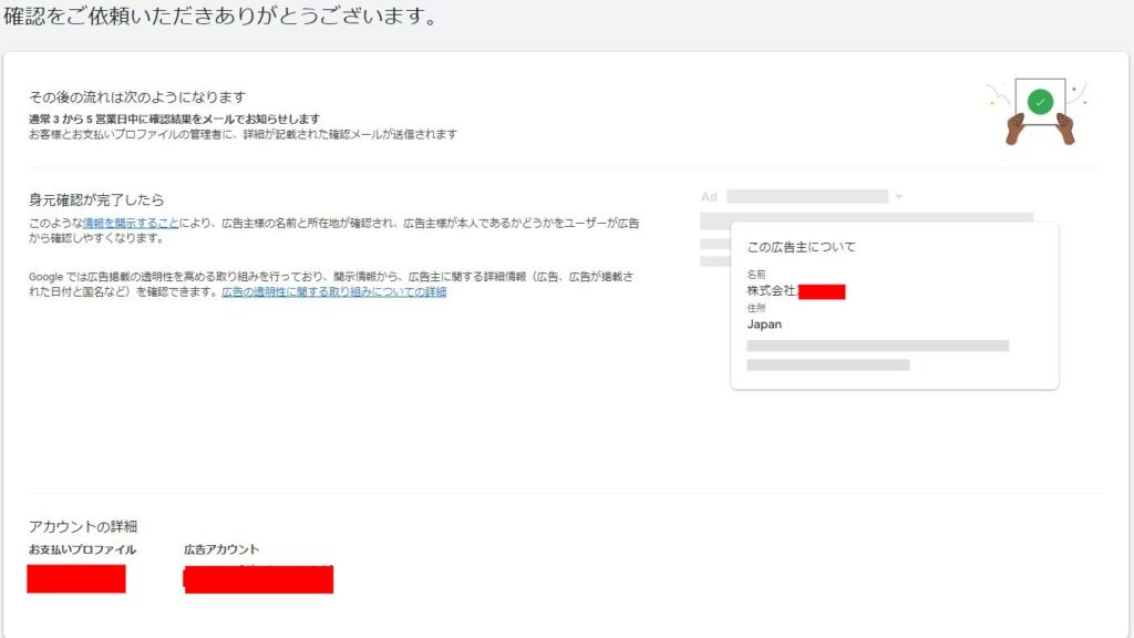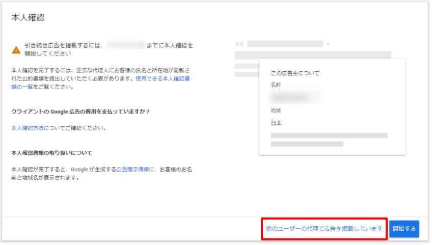 基本的には、広告運用を代理店に依頼している場合には身元確認作業を行うのは代理店になることが殆どです。