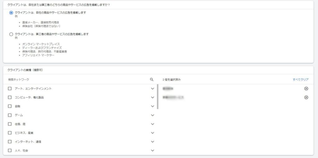 クライアントの業種については該当するものを選択すれば問題ありません。