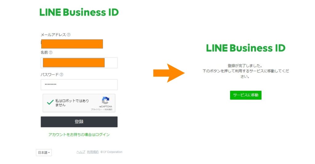 登録用メールアドレスにLINEからのメールが届いた後、メールに記載のリンクをクリックするとビジネスIDの登録へと進むことができます。